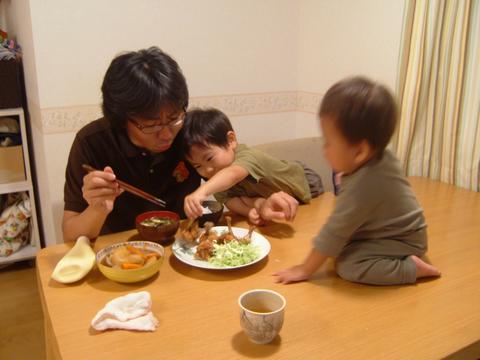 自分たちはさんざん食べたくせに、真吾の夕飯に群がるハイエナ2人組。
