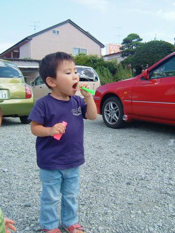 お手伝いも飽きたのでシャボン玉で遊びます。