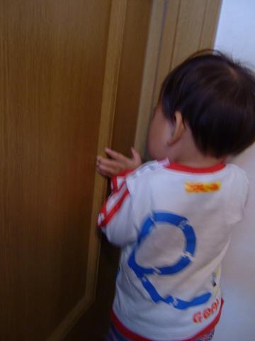 こうやってドアを内側から締めるのを覚えました。ノブに届かないので開けられず自分を閉じ込める結果になるのですが。