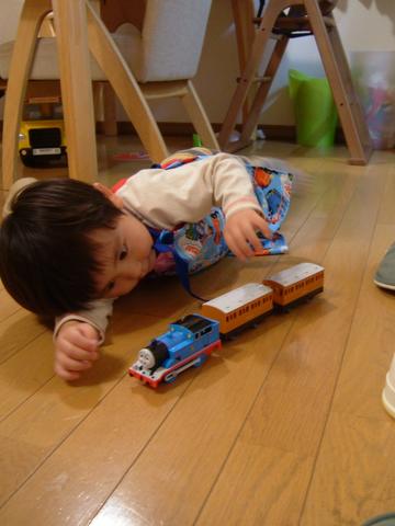 エプロンつけてトーマス走らせてます。
