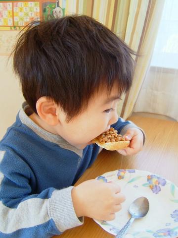 今朝は納豆トースト。そんなに精つけるから騒ぎすぎて怒られんだよ。