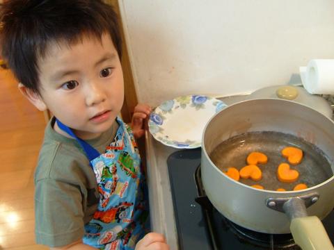 今日はおとーさんの誕生日だから空がおいしいの作るよ!これはニンジンのグラッセだって。