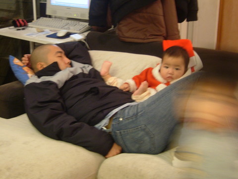 綾をお腹に載せて仮眠中。と、その前にハイパークロックアップした空がフレームイン!