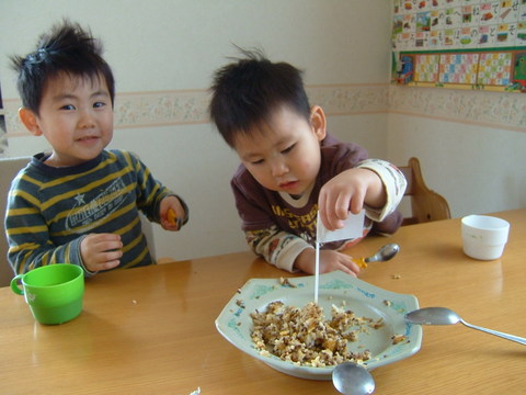 お察しの通り、旗を倒さずにどこまで食べられるか、という対決なんですが、ぐらっとくるとすかさず立て直す輩がw