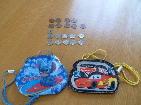 空と凪がお年玉でゲットした手持ち(札はゆうちょへ)総額。この間はぬりえだったけど、残りはどう使うかな?