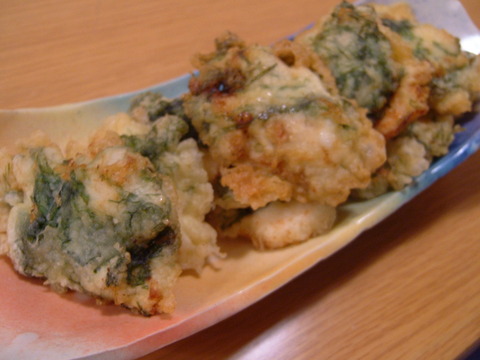 いつもの鶏天をスペシャルな青のりで巻いて磯辺風に。香りが全然違うんです!超美味☆