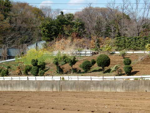 畑の中に何かの形をした植木が立ち並ぶ・・「何」ってのもビミョーにわからんし・・趣味?うーむ・・