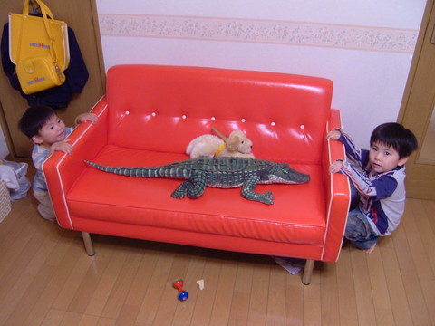 ワニのベッドだよぉ♪わんわんが添い寝なのぉ♪