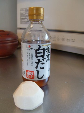 最近とっても重宝してる白だし。薄めてもだしが効いてておいしいの。今日は上の畑のかぶで一品。