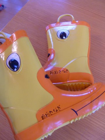 長靴持ってない凪のために、ばーばがアヒル長靴を買ってくれたのでした。早速、記名。