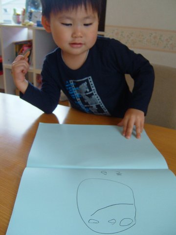 午前中はこんな感じで絵を描いたり色をぬったり幼稚園気分で遊びます。描いてるのが空の顔、ってとこが凪のかわいいところ☆