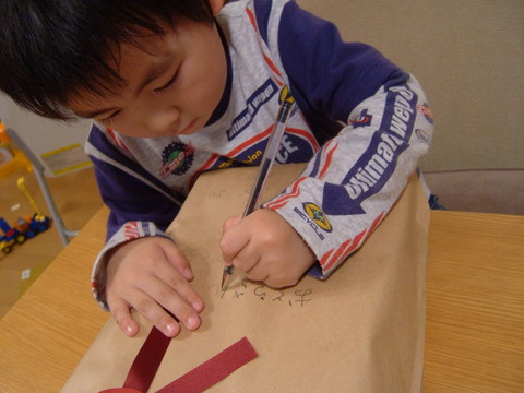 真吾へ父の日のプレゼント。お父さんがお風呂の間に急いでメッセージ書かなくちゃ!