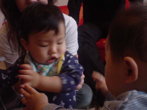 ケンケンガクガク。ヤイノヤイノ。(音声はすべて2人の奇声のため、訳は省略)
