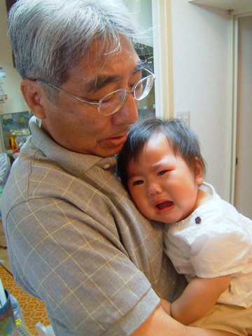 今日はおじいちゃんに父の日のプレゼントを持ってきました。というのにやっぱり人見知りして泣いちゃった。。