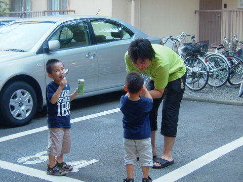 2人して追いかけ回して遊んでもらってる。いつもありがとね。>貴史