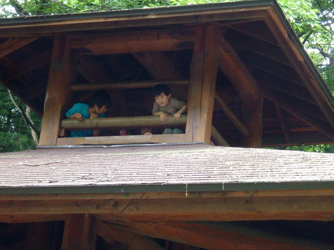 「赤ちゃんの家」という建物に登った空。かれこれ15分くらいこの中に入ったっきり。欄干のすき間に凪も。